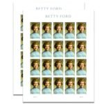 The Betty Ford stamp is being issued in panes of 20 Forever® stamps. This Forever stamp will always be equal in value to the current First-Class Mail® one-ounce price.