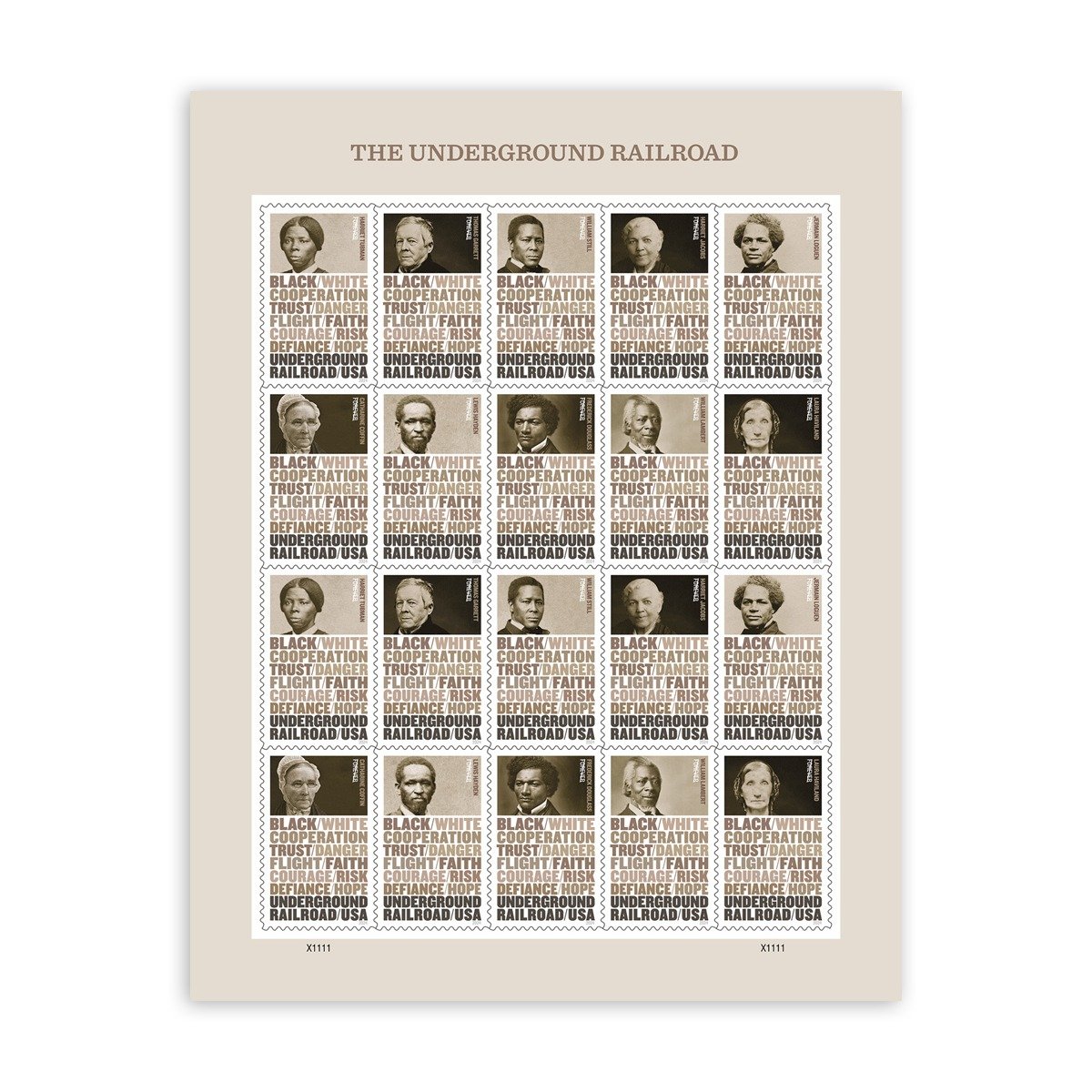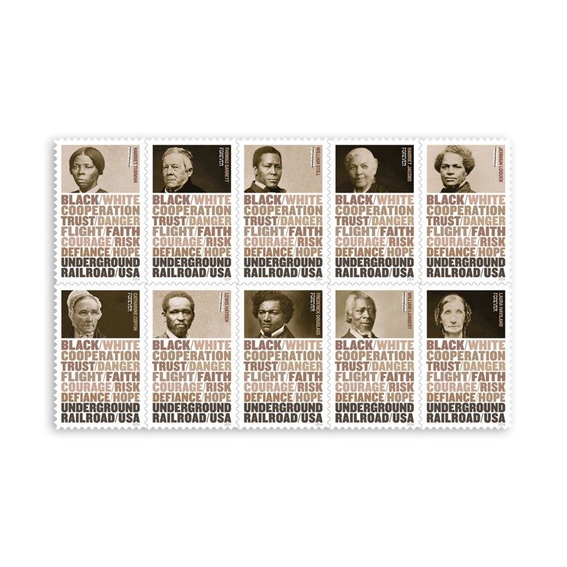 Most remained anonymous, but some left their mark on history. The pane of 20 stamps depicts 10 men and women who escaped slavery and/or helped others escape.